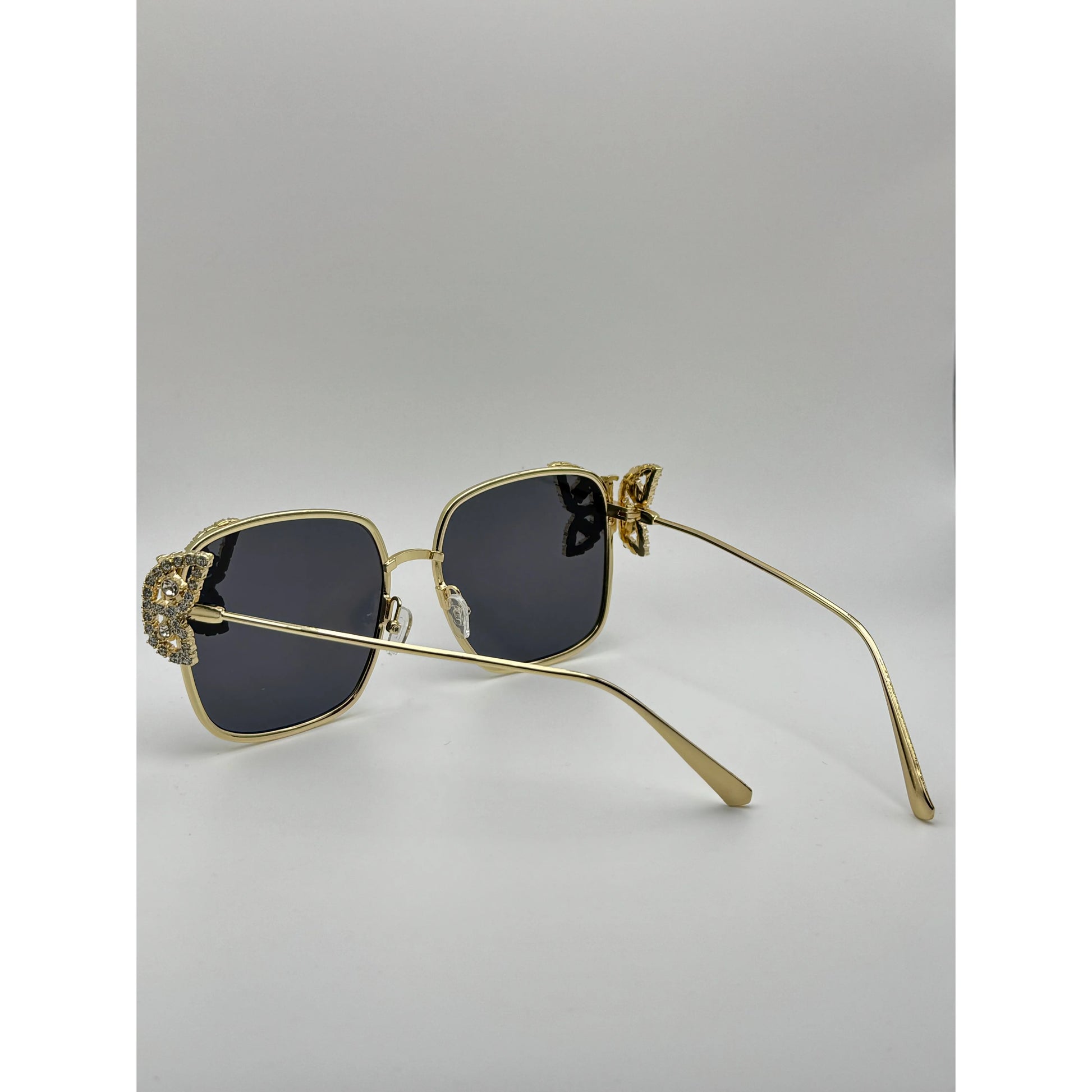 Add a touch of luxury and sparkle to your outfit with these jeweled butterfly sunglasses! Featuring elegant gold frames and beautifully crafted rhinestone butterfly embellishments, these statement shades are designed to impress. The dark tinted lenses provide full UV protection while the delicate butterfly accents add a whimsical, glamorous touch. Perfect for weddings, photoshoots, vacations, music festivals, and everyday diva moments. Lightweight and stylish, these sunglasses are the perfect accessory for any fashion-forward woman looking to shine!